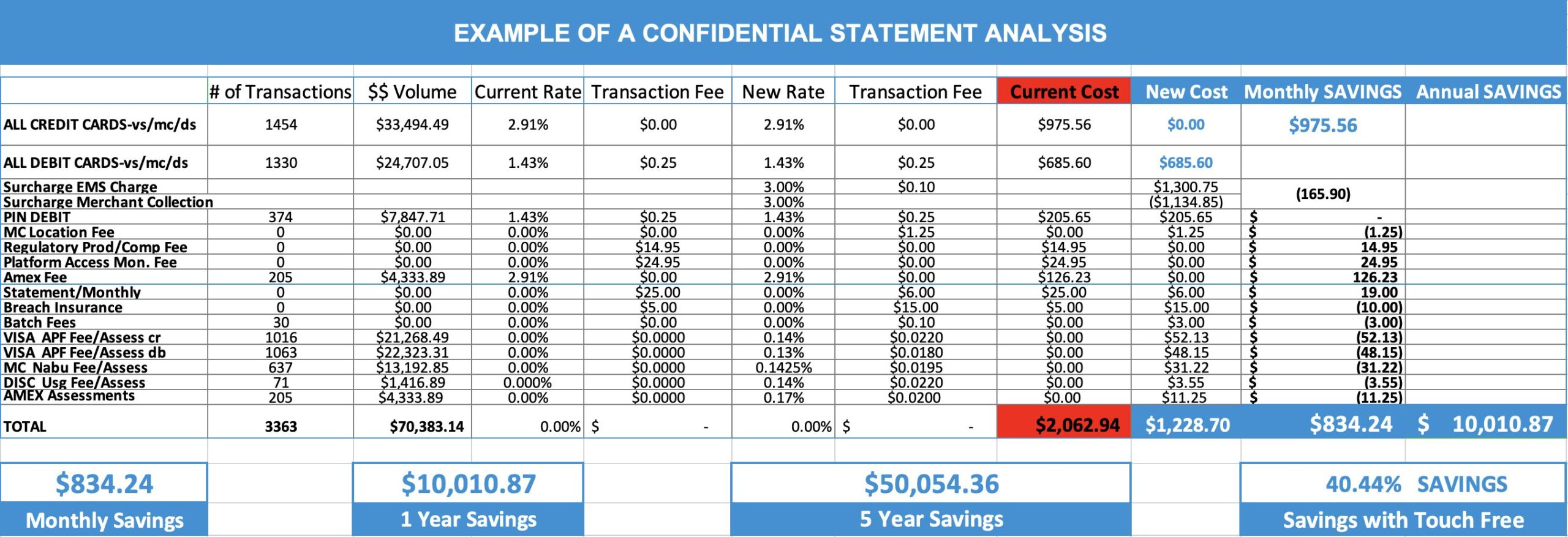 - Statement analysis with substantial savings